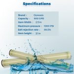 The Ozmosis SW-2521 Reverse Osmosis Sea-Water Membrane is an advanced technology designed to deliver cleaner, higher-quality water. With a capacity of 300 GPD (gallons per day) and an impressive 99.5% salt rejection rate, this osmosis sea-water membrane generates more water of superior quality while consuming less energy compared to similar membranes. The Ozmosis SW-2521 osmosis sea-water membrane is built to fit all standard 2.5″ x 21″ membrane housings, including those made of stainless steel, PVC, or fiberglass. This makes it highly versatile and suitable for multiple applications, from residential to commercial use. This membrane utilizes premium quality Toray membrane sheets, known for their reliability and efficiency. The high boron-removing rate and effective salt rejection ensure that you get pure, high-quality water consistently.